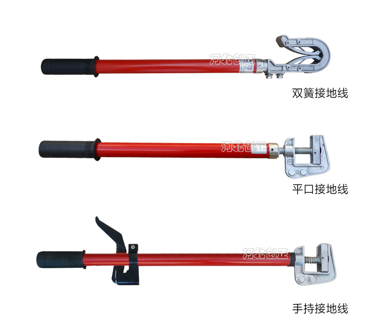 (4)接地軟銅線(xiàn)有分相式和合相式,接地棒有平口螺旋式、手握式、圓口式、雙簧卡口式、猴頭式等。