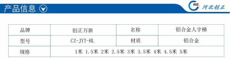 鋁合金人字梯常用規格有2米、2.5米、3米等。