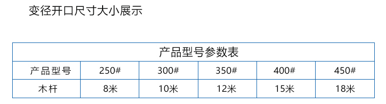 300mm型、350mm型、400mm型、450mm型、500mm型;